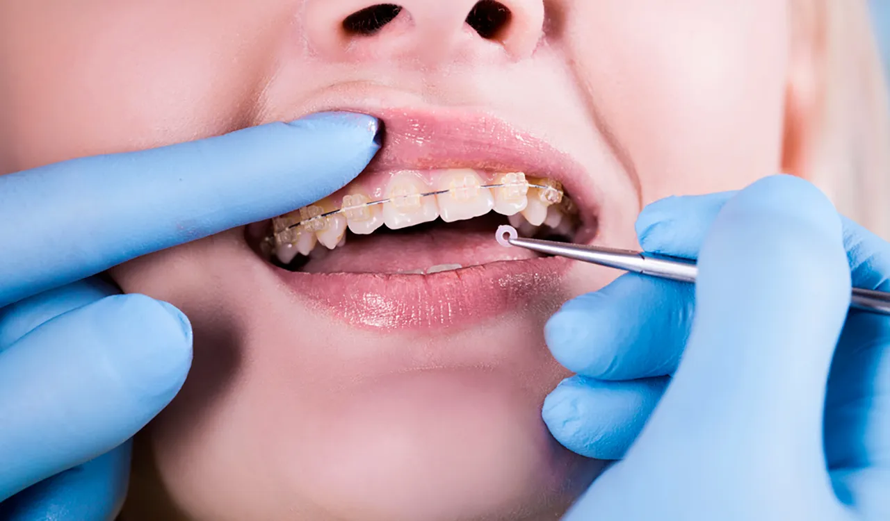 Установка керамических брекетов