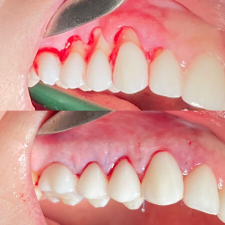 В сложных случаях, когда исчезло большое количество мягких тканей, закрытие рецессии десны проводится хирургическим путем.