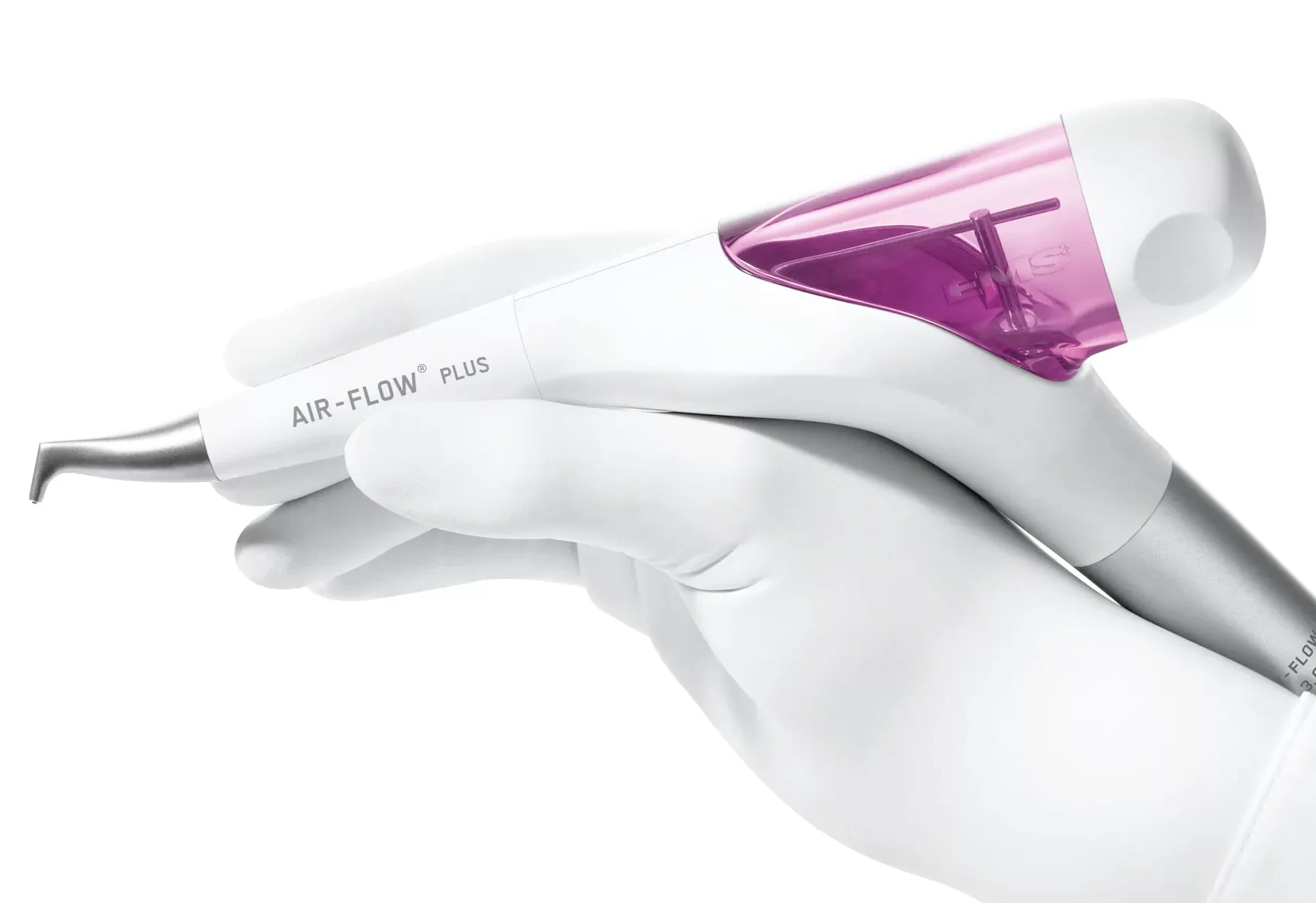 Чистка зубов Air Flow проходит абсолютно безболезненно для пациента. Она не повреждает эмаль, а после процедуры зубы даже немного осветляются. Выполнение Air Flow заключается в распылении смеси на зубы под регулируемым давлением. Прибор способен не только очистить эмаль, но также промежутки между зубами.